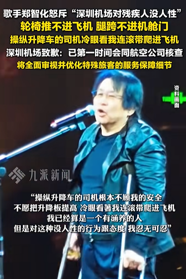 近日,台湾残疾歌手郑智化批评深圳机场“无人性”易投投,逼行动不便乘客“连滚带爬”登机,机场方面深夜道歉承诺立即改善。
