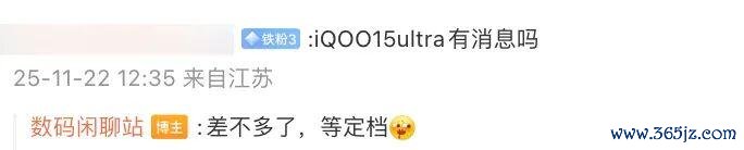 此前,有网友询问博主@数码闲聊站 “iQOO15ultra有消息吗”,这位博主表示“差不多了,等定档”。