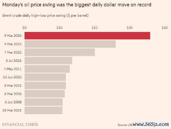 在接下来的23小时里,作为基准的布伦特原油价格一度飙升至每桶119美元,随后暴跌至84美元,创下有记录以来按美元计算的最大日内波动幅度。